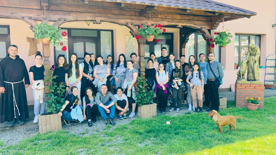 Frate Eugen con i giovani e alcune famiglie del “gruppo speranza”. Si ratta di un gruppo di giovani, che negli anni sono cresciuti, che aiutano i frati nelle attività di recupero di altri giovani.